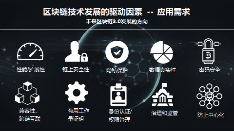 其实从某个角度来说,它的驱动因素正是前面我们说的痛点,这些痛点恰恰又是我们的应用需求,我们的客户需求,这些就是驱动区块链技术发展的最大动力,包括刚才说的性能,拓展性包括链上的安全性,隐私保护,数据的真实性都是用户的刚需。