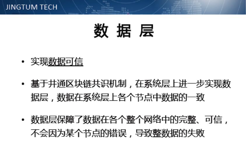 数据层实现数据可信,数据可信是指数据在每一家数据都是一样的,这是数据可信,你对某一个人的评分在你这儿和我这儿是一样的。数据可信使得大家对区块链都有一个看法,我们从来不认同“区块链处于早期阶段”这个观点,因为我们从来是把区块链当做不同层次的应用,每一个层次都能用,数据可信里现在已经很多人在用了,做征信做溯源,这里面区块链要求很低它也能做,现在很多人在做。