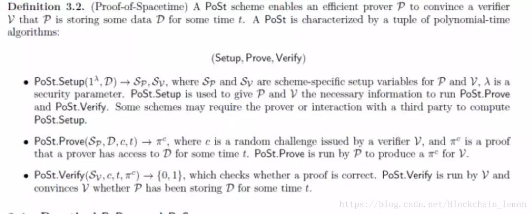 从逻辑上来讲,数据的持有性证明是一种由两个角色和四个步骤完成的游戏。第一个角色是Challenger,第二个角色是完成Proof的人,Challenger的第一步把文件和一些谜题生成之后,放到 Server上;第二步生成某个 Challenger的信息,需要的某些数据;第三步存储节点完成了某个Proof,发回给 Challenger;第四步就是 Challenger用自己原来遗留的一些信息,生成一个 Verify,用Verify跟 Proof去验证这东西是不是对的;这就是用两个角色、四个步骤完成验证。