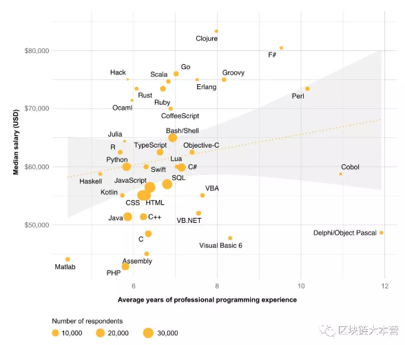 今年有超过10万名开发者,耐心填写了这份用时超过30分钟的问卷。广泛收集的数据,不仅描摹了整个IT行业的现状,更为每个人在职业生涯面对不确定问题时提供指南——新工作该从哪儿找,跳槽到新职位该如何报价?高薪需要具备哪些技能?——如果你会用Clojure写区块链合约解释器,工资要比用JavaScript的同行多一半。