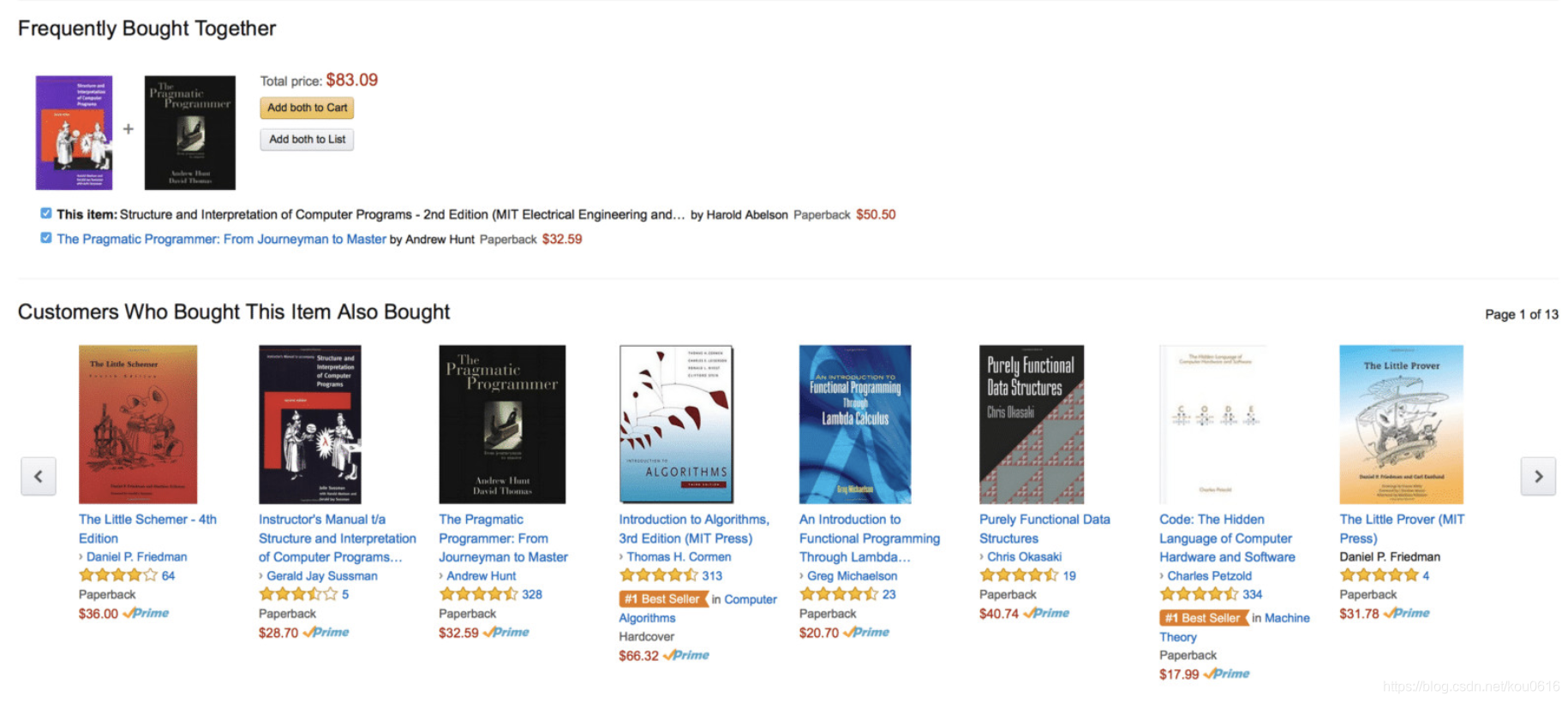 上图是本篇文章的第3张图。每次在亚马逊上购物,网站算法就会看其他人购买了你的这件商品后会继续买什么,然后会把推荐结果展示给你。