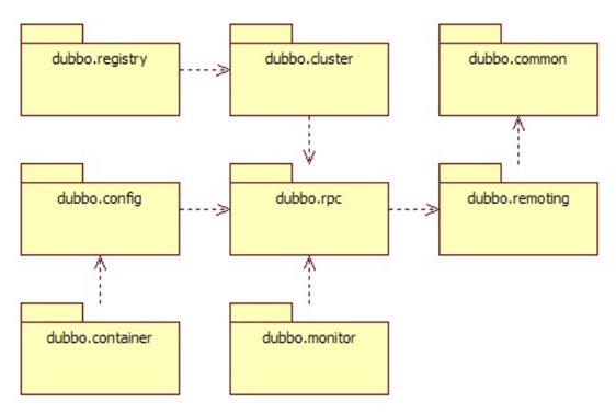 - dubbo-container 容器模块:是一个 Standlone 的容器,以简单的 Main 加载 Spring 启动,因为服务通常不需要 Tomcat/JBoss 等 Web 容器的特性,没必要用 Web 容器去加载服务。