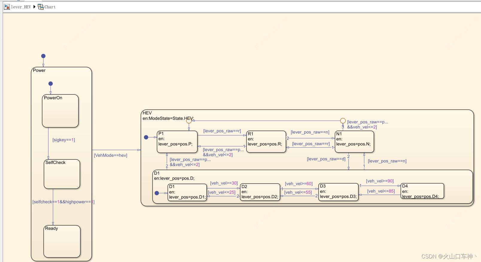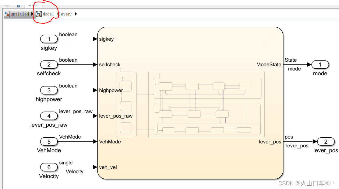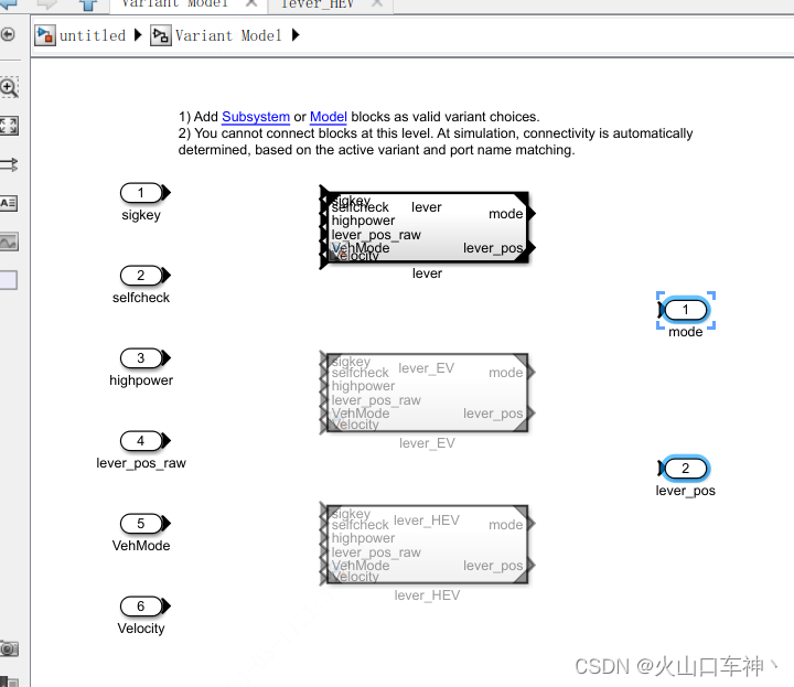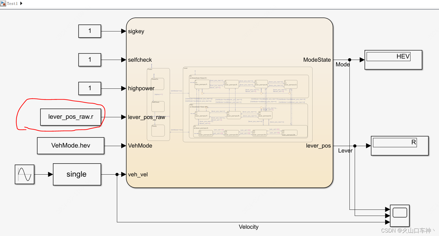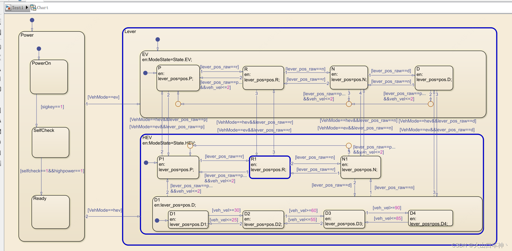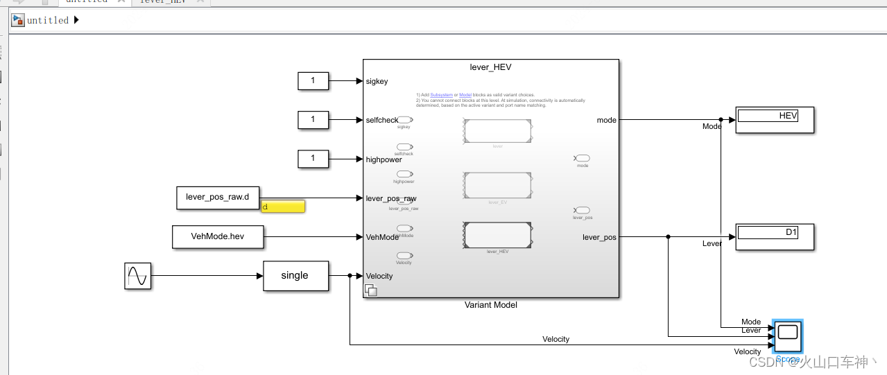 由于变量veh_mode_select的默认值为3,所以模型lever被高亮选中