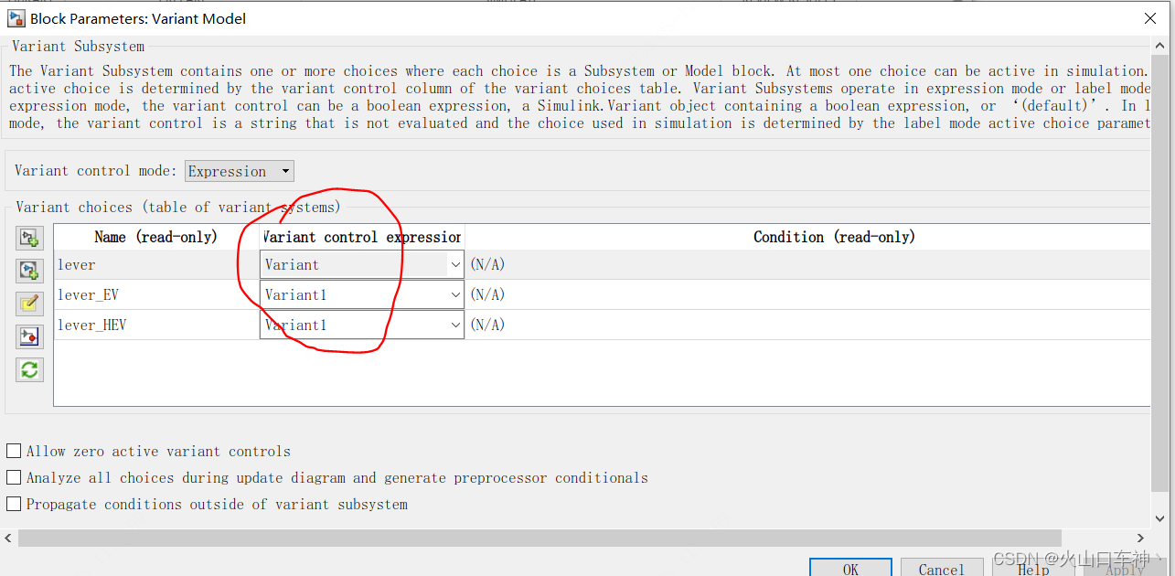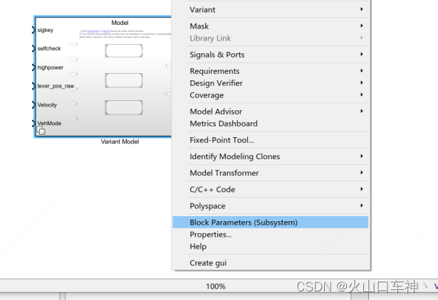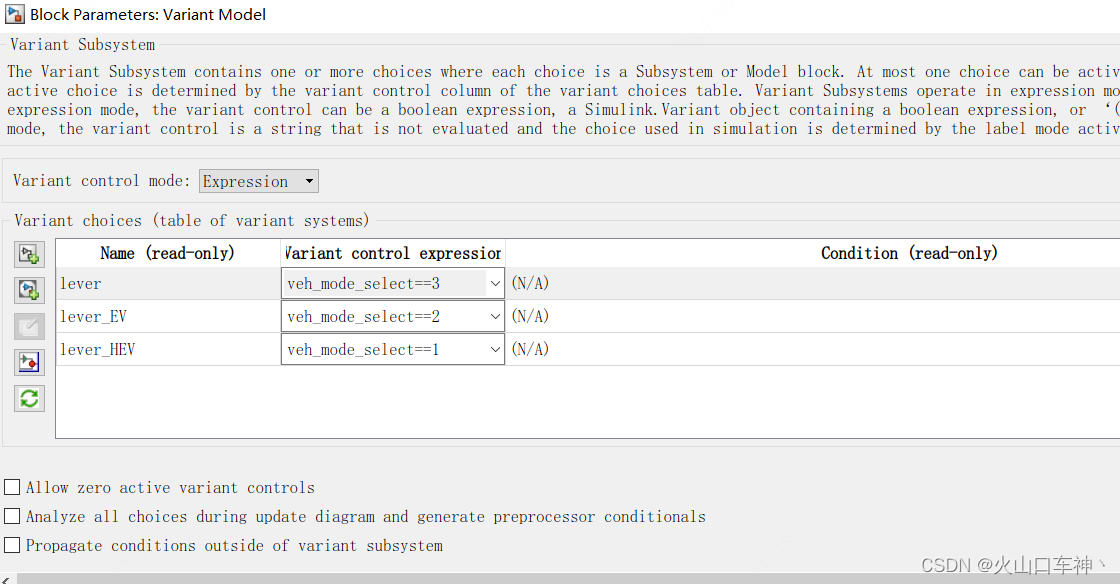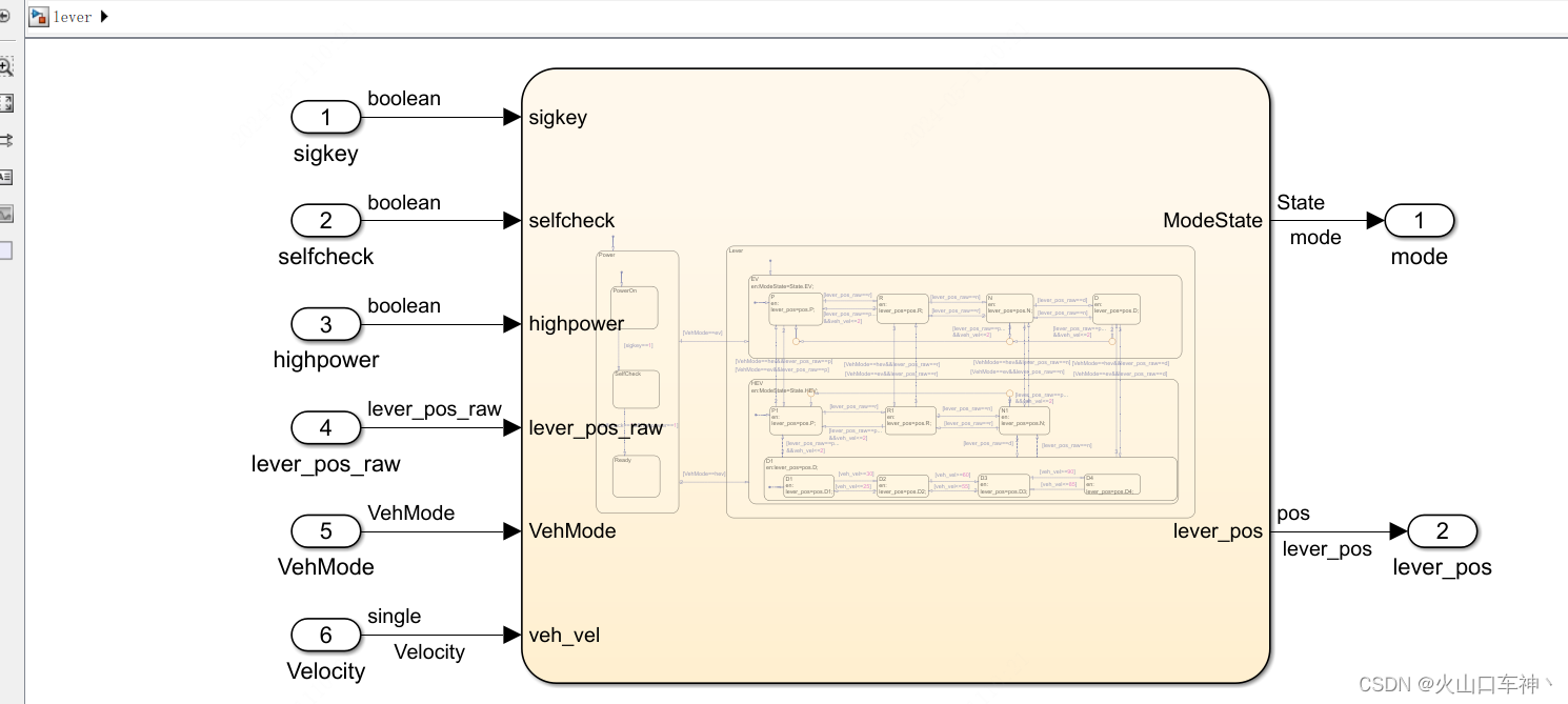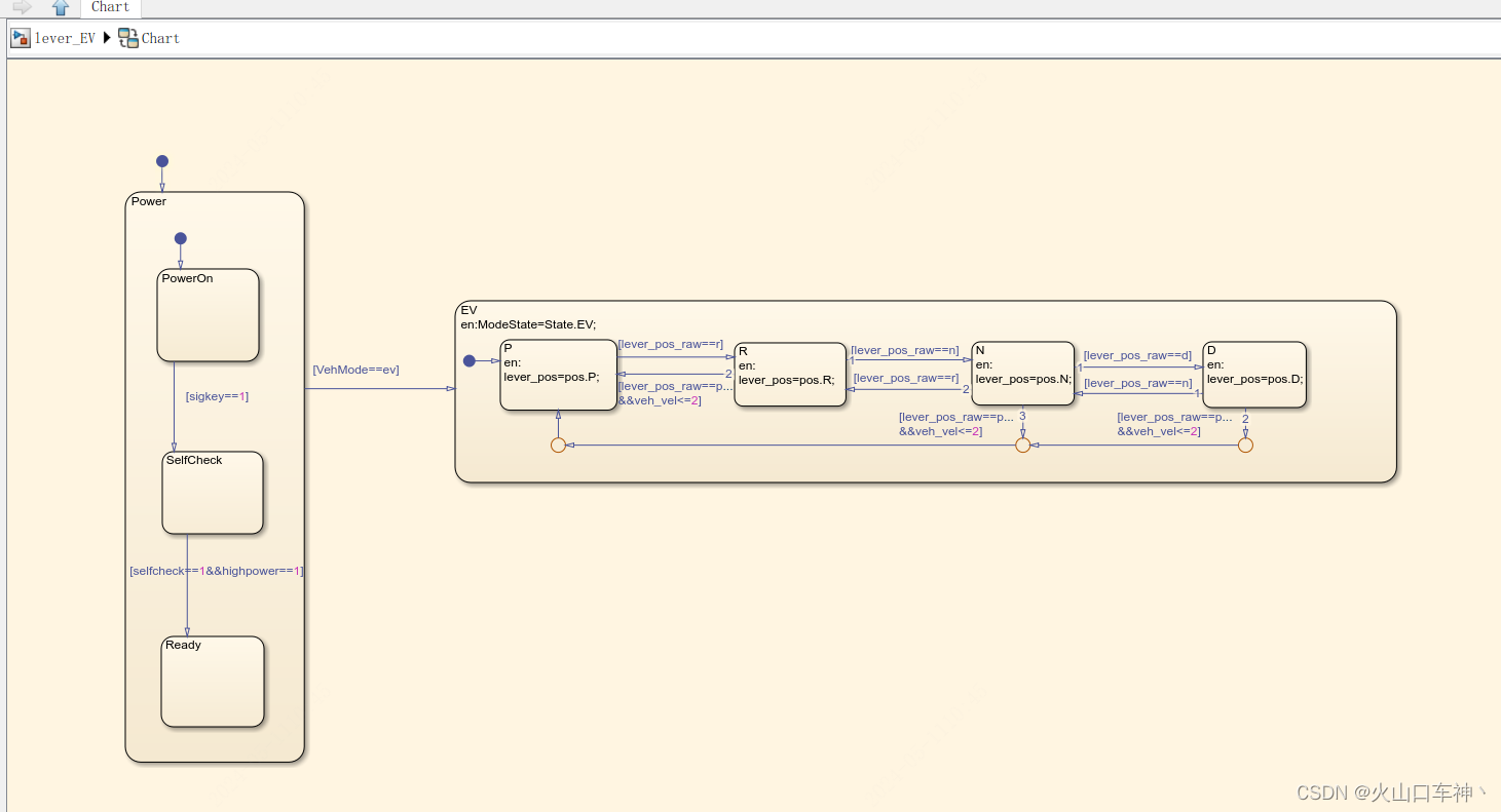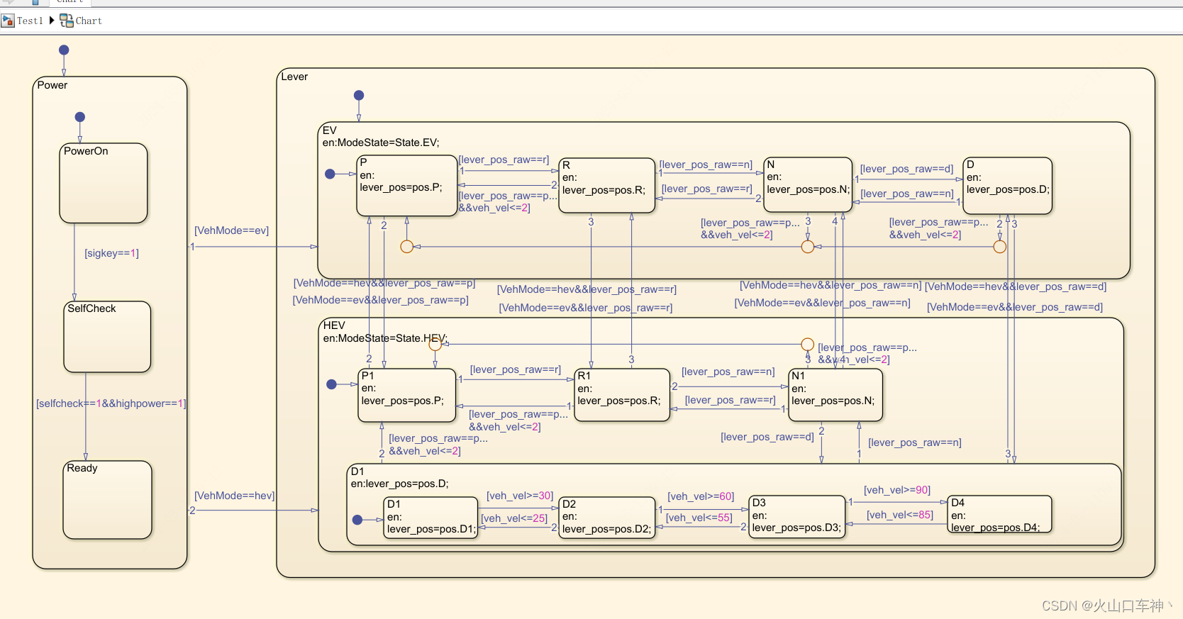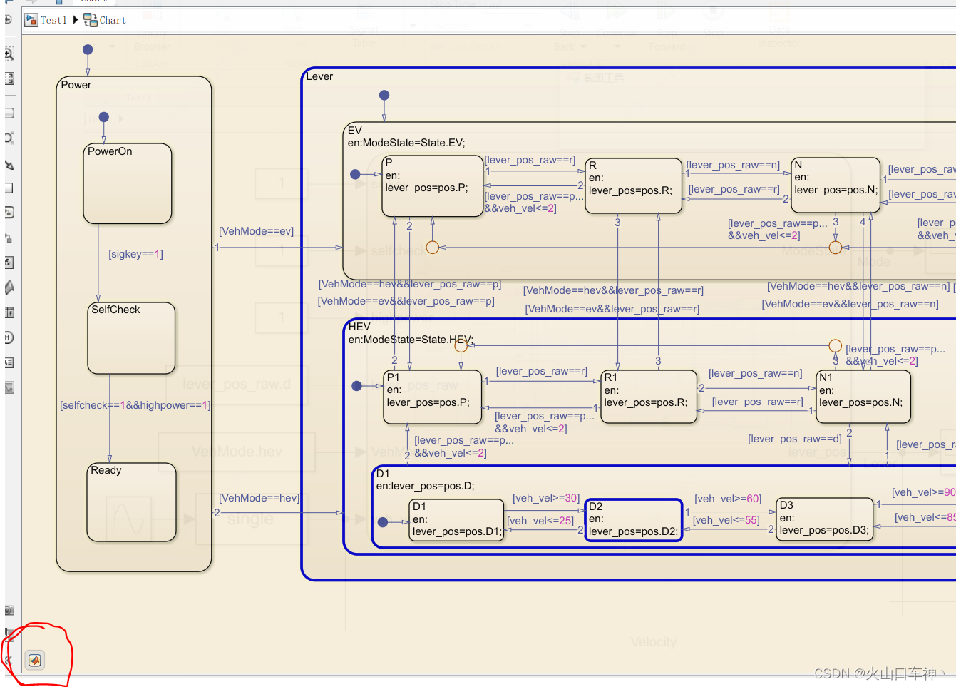 由于变量veh_mode_select的默认值为3,所以模型lever被高亮选中