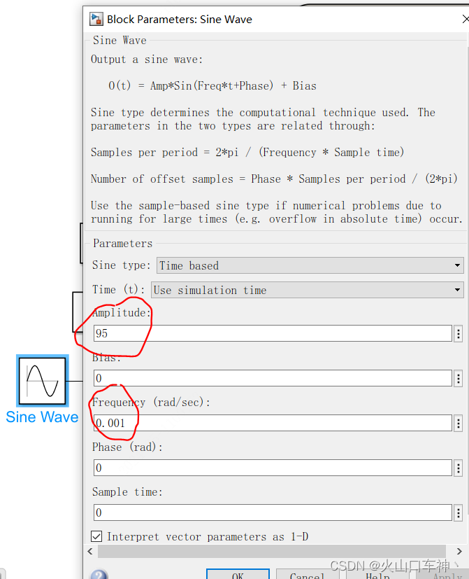 lever_pos_raw.p模拟传感器的p档信号,车速(Sine Wave)按照如下设置