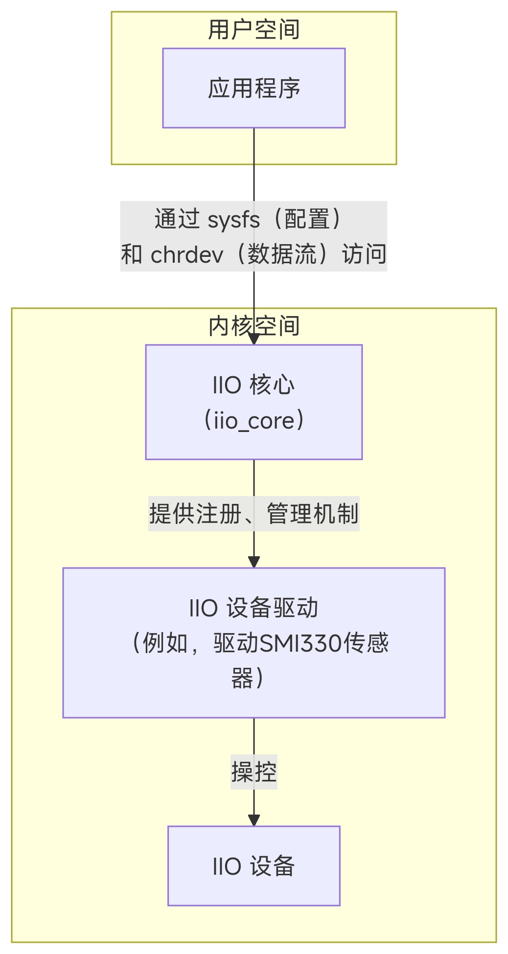 C["IIO 设备驱动<br>(例如,驱动SMI330传感器)"]