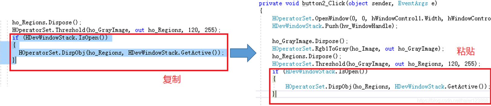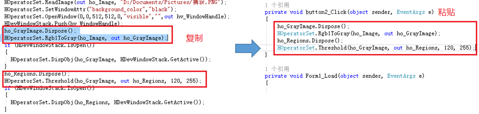 20、添加变量。打开halcon生成的程序,复制变量程序。打来“form1.cs”程序,粘贴程序。