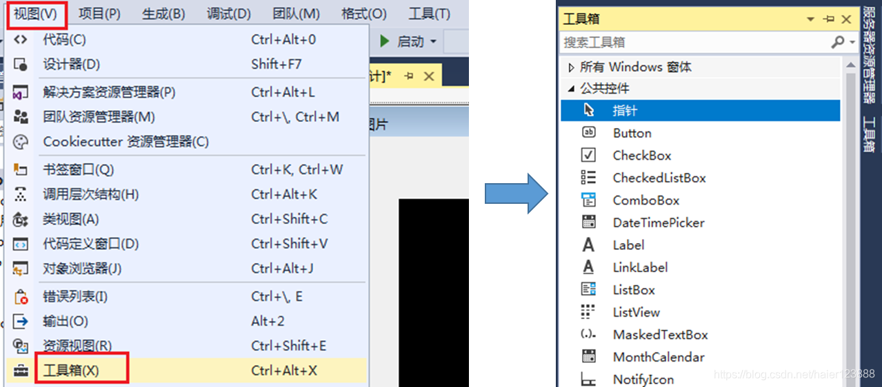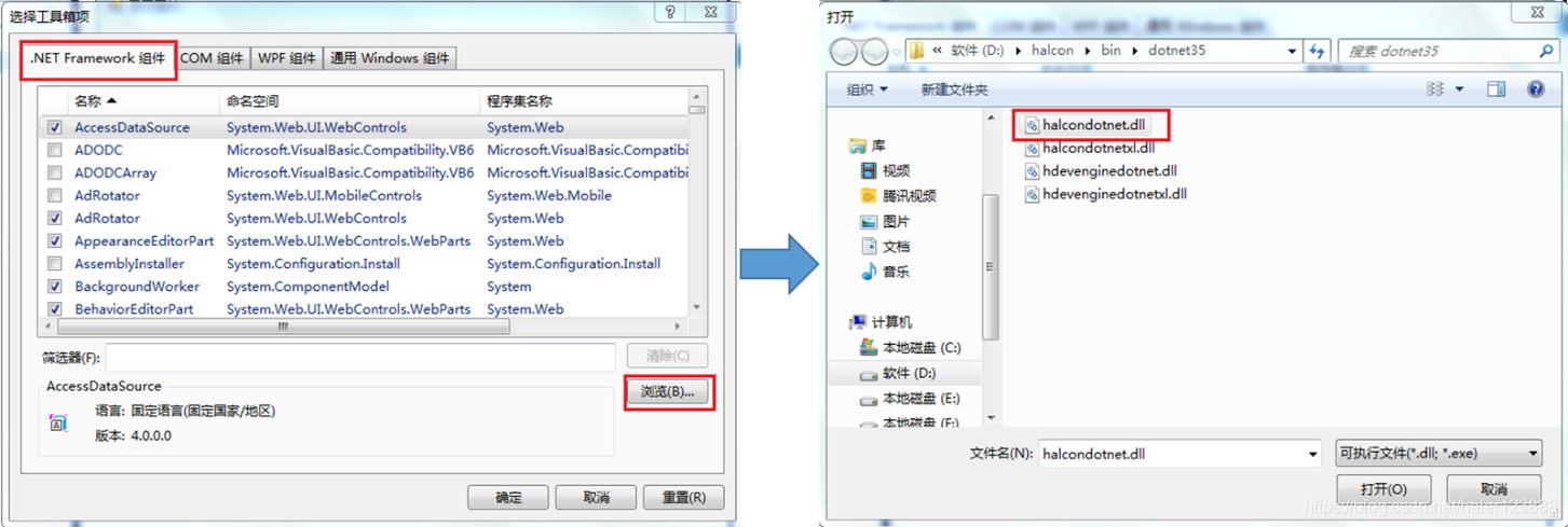 14、选择工具箱中公共控件下的某一个控件,单击右键,选择【选择项】,弹出“选择工具箱项“界面。选择【.NET Framewok组件】→【浏览】→【halcondotnet.dll】→【打开】