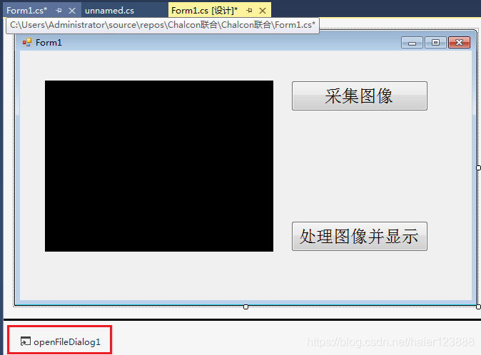 9、回到之前的界面form1.cs,开始进行c#配置工作。