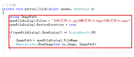 22、添加调用openfiledialog的函数。打开“form1.cs”,添加下列程序: