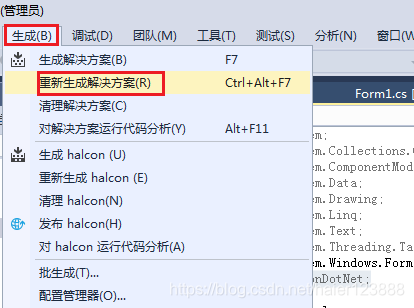 12、添加命名空间完成后,选择菜单栏中的【生成】→【重新生成解决方案】