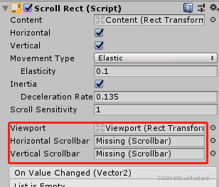如果不点击Viewport的状态不会重置,因为ScrollRect组件中的状态是Missing状态,bar组件设置Viewport区域的宽高