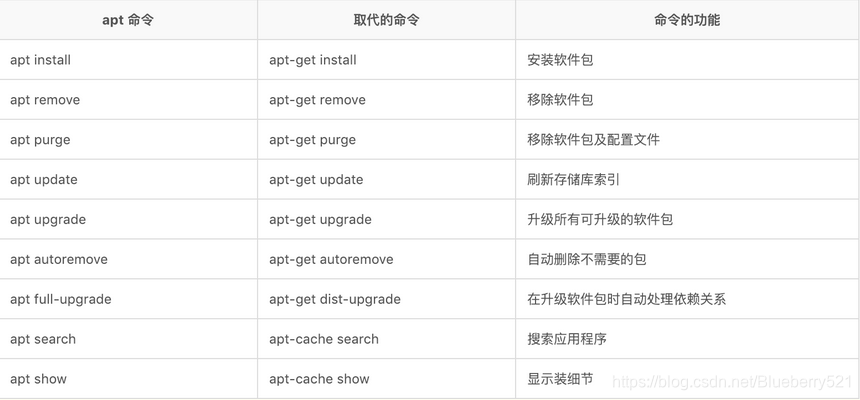 简单来说就是:apt = apt-get、apt-cache 和 apt-config 中最常用命令选项的集合。