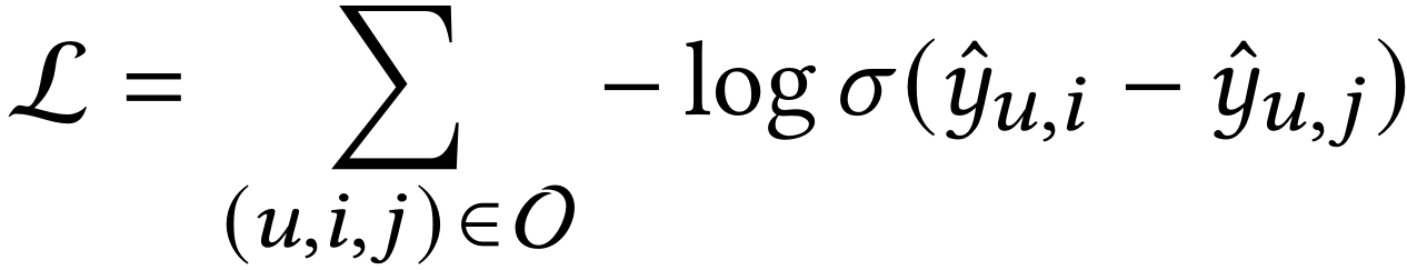 其中O是训练数据,u、i和j分别是用户u、正样本i(用户u交互过的物品)和负样本j(物品u没有交互过的物品),σ是非线性激活函数。