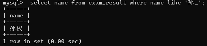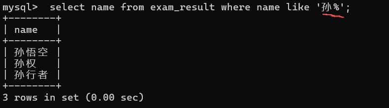模糊匹配 , % 表示任意多个字符(包含 0) , _ 表示任意一个字符 |
