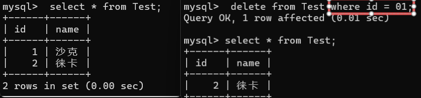 insert into Test values(01,'沙克'),(02,'徕卡');