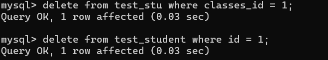 insert into test_stu values(1,56645,'语文',1),(2,65465,'数学',2);#为子表添加元素
