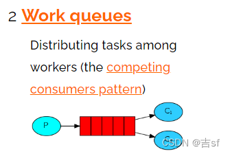 与入门程序的简单模式相比,多了一个或一些消费端,多个消费端共同消费同一个队列中的消息。