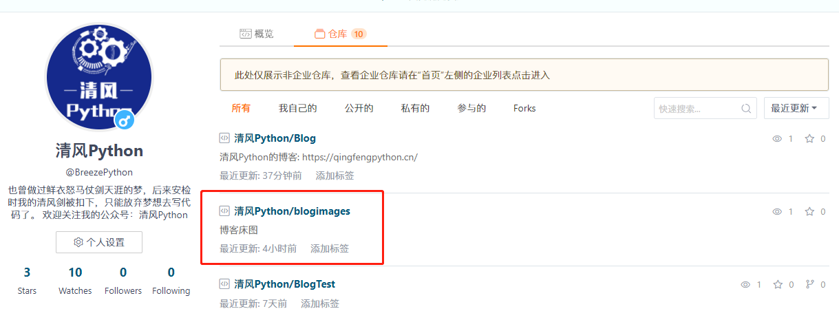 上次在给大家介绍博客搭建时,模拟创建了一个BlogTest的仓库,其实本人自用的是Blog仓库以及搭配的blogimages仓库。