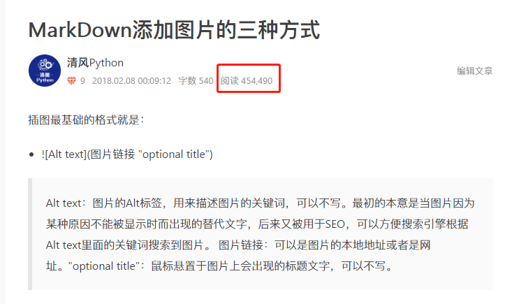 随着越来越多的人开始使用markdown写作,在对markdown的语法简洁高效而欢喜的同时,却对markdown的图片展示而发愁。如何在markdown中插入图片,相信已经成为很多人的苦恼所在。来看看这篇文章的阅读量就知道了,只是几百字的文章,发文两年阅读量45万。