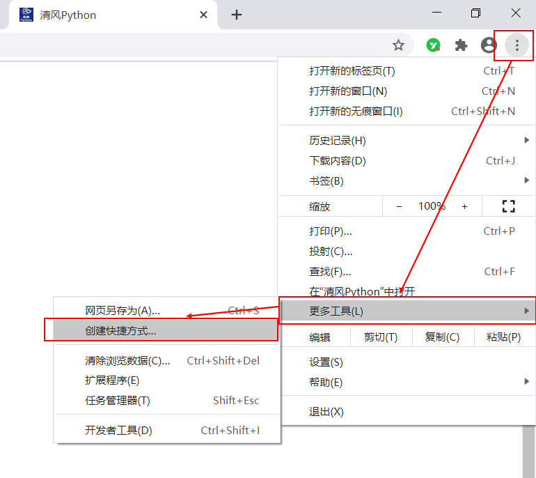 - 创建一个桌面的浏览器快捷方式,以备后续使用,比如这样: