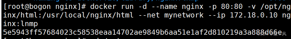 docker run -d --name nginx -p 80:80 -v /opt/nginx/html:/usr/local/nginx/html --net mynetwork --ip 172.18.0.10 nginx:lnmp
