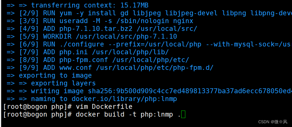 docker run --name=php -d -p 9000:9000 --volumes-from mysql --volumes-from nginx --net mynetwork --ip 172.18.0.30 php:lnmp