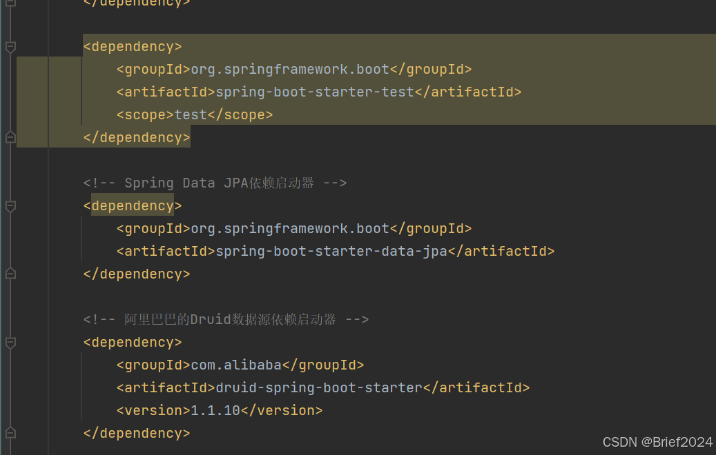 <!-- 阿里巴巴的Druid数据源依赖启动器 -->