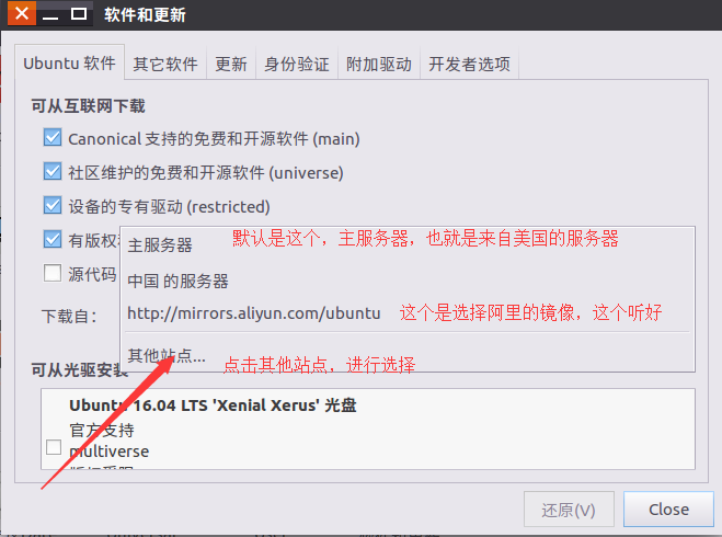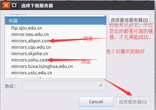 选择阿里的或者搜狐的镜像,然后点击选择服务器