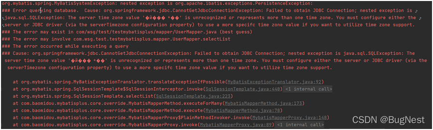 Error querying database. Cause: org.springframework.jdbc.CannotGetJdbcConnectionException: Failed to obtain JDBC Connection; nested exception is java.sql.SQLException: The server time zone value '�й���ʱ��' is unrecognized or represents more than one time zone. You must configure either the server or JDBC driver (via the serverTimezone configuration property) to use a more specifc time zone value if you want to utilize time zone support.