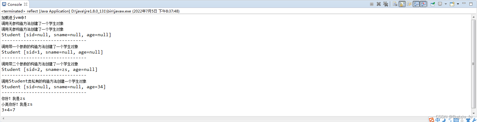Student stu03 = (Student)c3.newInstance("2","zs");