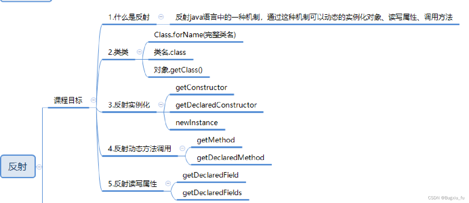 反射Java语言中的一种机制,通过这种机制可以动态的实例化对象,读写属性,调用方法,我们可以调用属性的私有方法了。