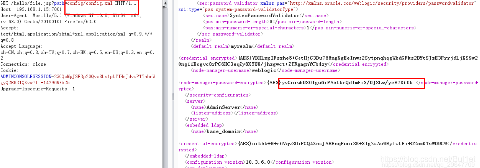 config.xml是base_domain的全局配置文件,所以乱七八糟的内容比较多,找到其中的的值,即为加密后的管理员密码,不要找错了: