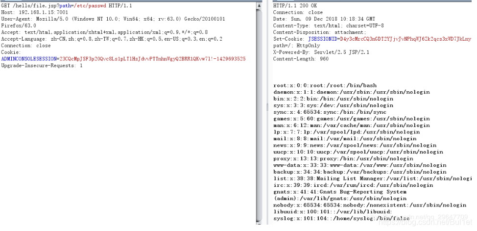 本环境前台模拟了一个任意文件下载漏洞,访问http://192.168.1.15:7001/hello/file.jsp?path=/etc/passwd可见成功读取passwd文件