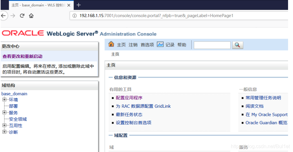 环境启动后,访问http://192.168.1.15:7001/console/login/LoginForm.jsp,即为weblogic后台。