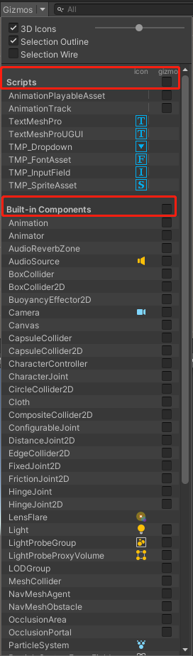 当Scene视图选中Gizmos