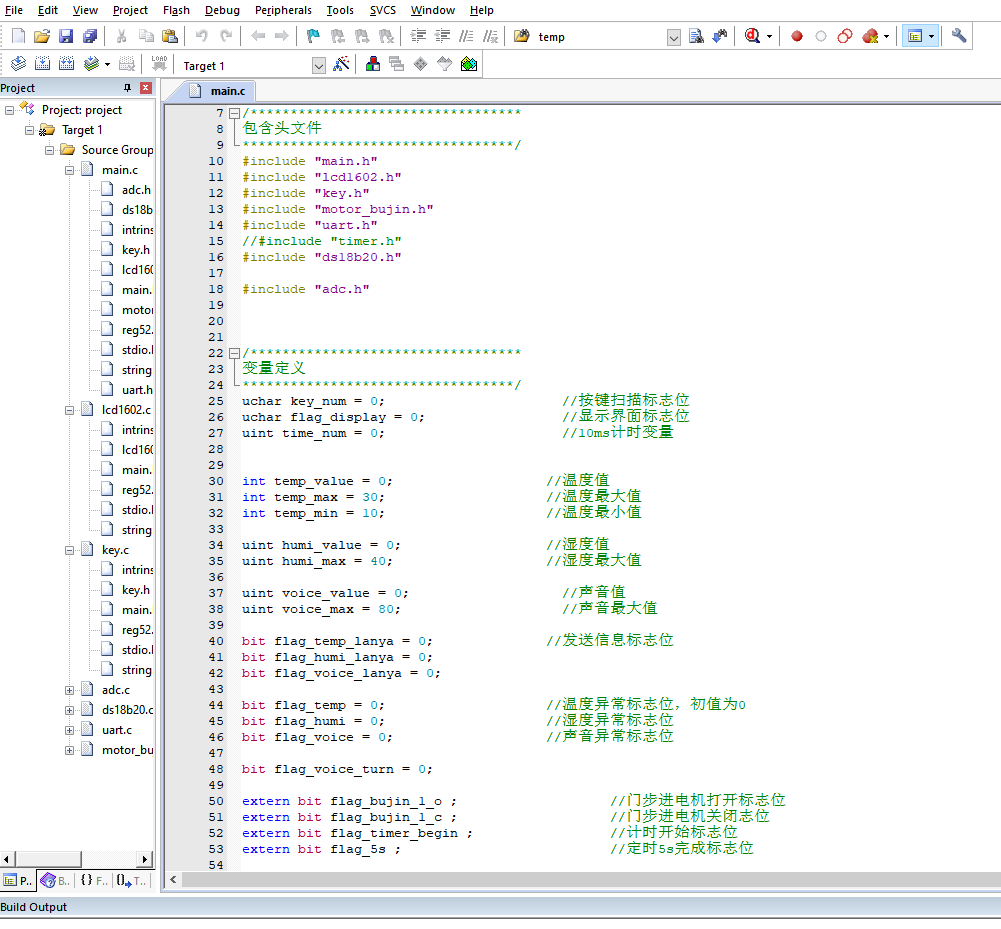 本设计所使用的编程环境是Keil5,相对于其他软件编程环境,Keil5更加的轻便快捷,操作更加的简单,深受广大嵌入式软件开发者的喜爱。Keil5支持多种芯片,包括51单片机、STM32、HC32、NXP等,生成的HEX文件,可通过烧录器直接烧录到单片机中,非常方便。另外,Keil5编译有三种,一种是单编,一种是部分编译,还有一种是全部编译,这样给开发人员更多的选择,并且编译的结果,显示在界面的最下方,供开发者查找错误。