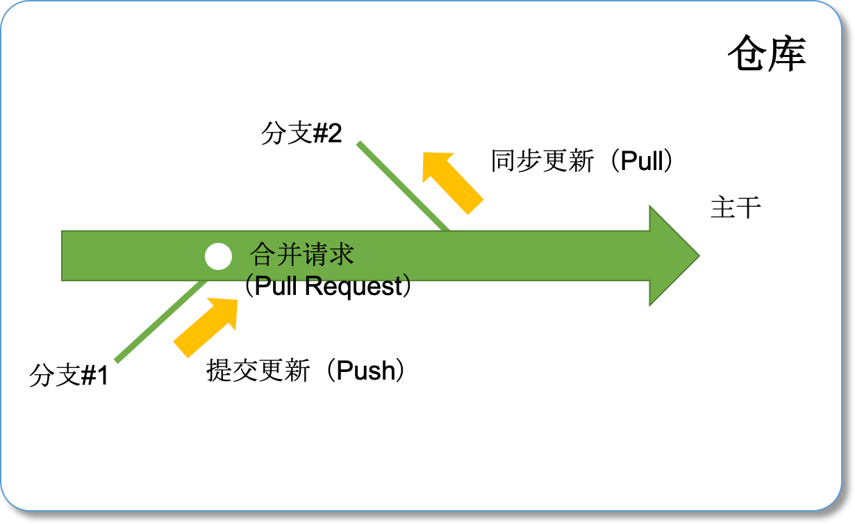 合并请求(Pull request):用于将分支上的修改合并到主干上