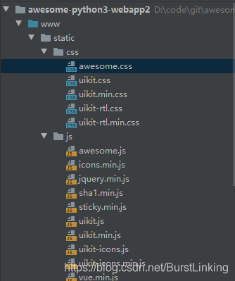 其中awesome开头的文件以及js下有几个文件是我们自定义的,可以直接拷贝复制。