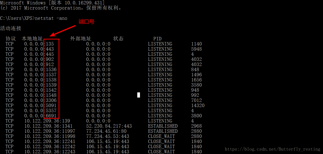 1)window+R-->netstat -ano