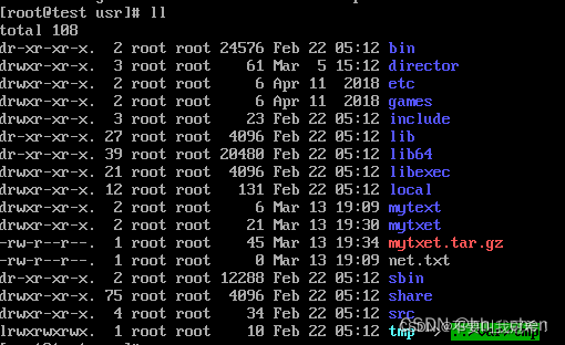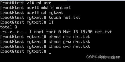 1. 1、在/use目录中新建一个目录名称为:mytest。并在mytest目录中新建文件net.txt
