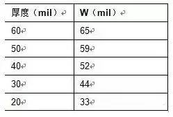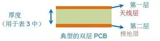 表2.FR4PCB的“W”值:天线层与相邻射频的接地层间的厚度。
