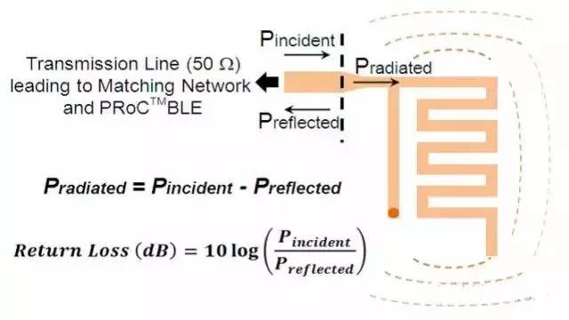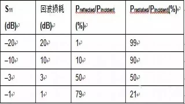 回波损耗指出:由于不匹配,天线反射的入射功率大小(公式1)。一个理想的天线会发射全部功率,不会产生任何反射。