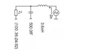 以下显示的是匹配网络的最终原理图。ZL表示阻抗为0欧姆时天线的阻抗。Zin指的是输出阻抗为50欧姆时网络分析仪观察到的阻抗。