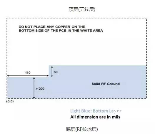 § 从天线到接地层要有足够的空间(间隙),该接地层的宽度应该最小。请参考图10、图15和图21。