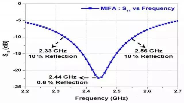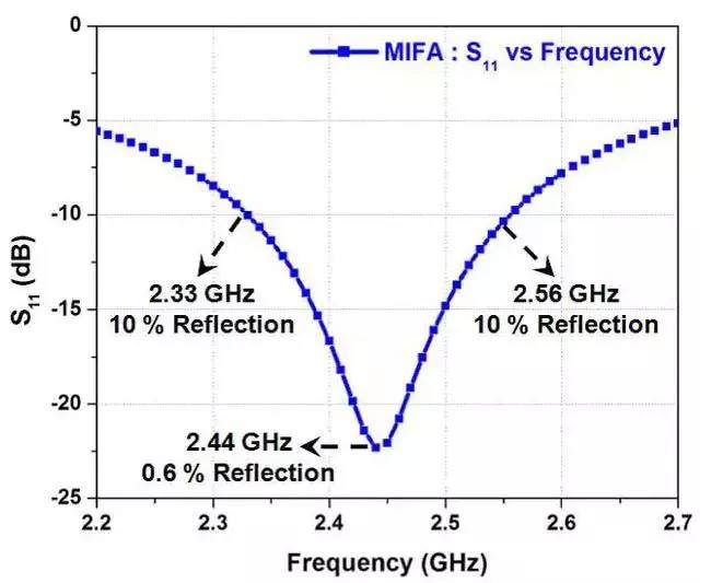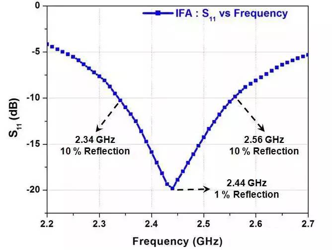 IFA在220MHz的带宽上(S11≤–10dB)的频率约为2.44GHz,如图18中所示。