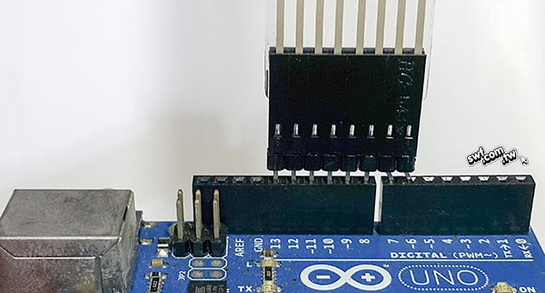 为了简化接线,可以使用「长脚型」排针,将其中两个脚用尖嘴钳稍微折弯,即可插入Arduino的排母: