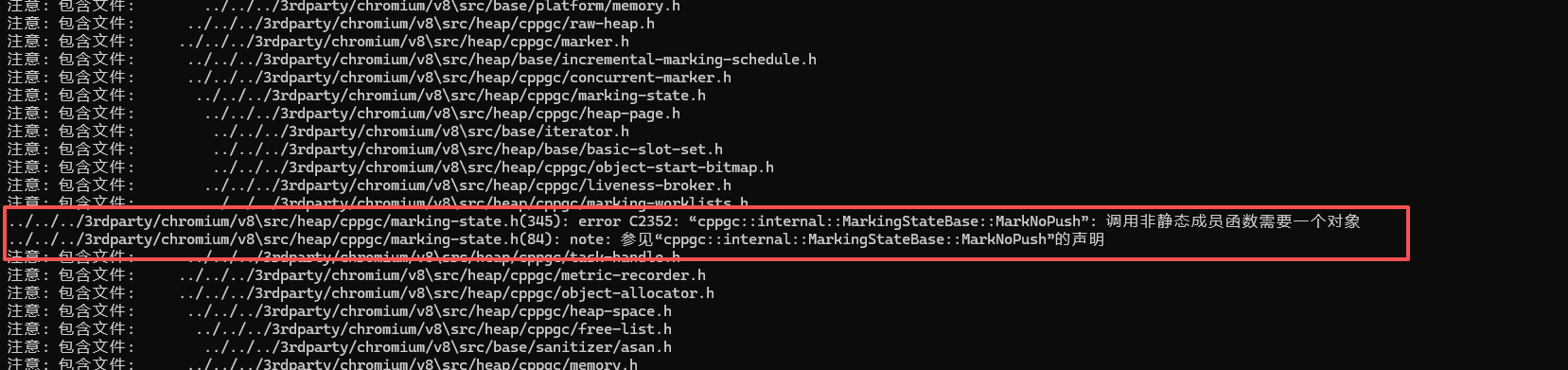 ../../../3rdparty/chromium/v8\src/heap/cppgc/marking-state.h(345): error C2352: “cppgc::internal::MarkingStateBase::MarkNoPush”: 调用非静态成员函数需要一个对象