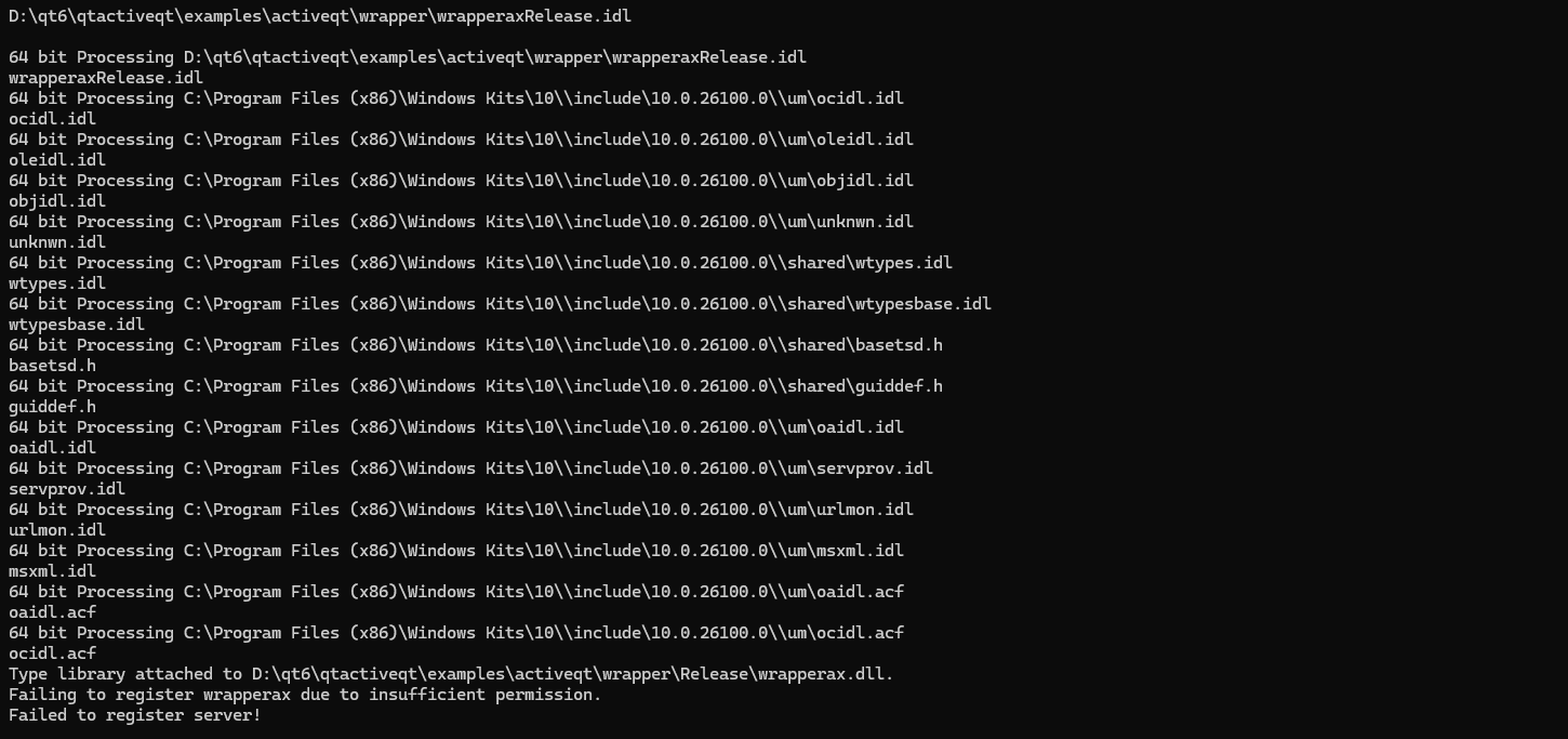 FAILED: qtactiveqt/examples/activeqt/wrapper/Release/wrapperax.dll qtactiveqt/examples/activeqt/wrapper/Release/wrapperax.lib