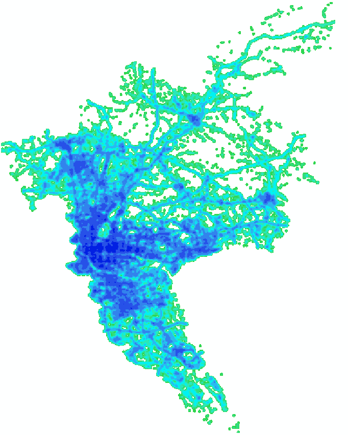 字段:x (网格中心点经度)、y (网格中心点纬度)、popu (常住人口数或者岗位人口数)